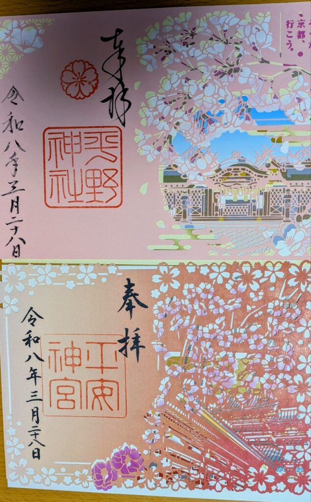 今度は妙心寺と平野神社と平安神宮での切り絵御朱印を購入。